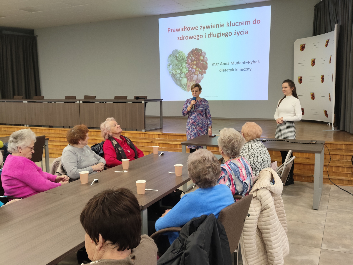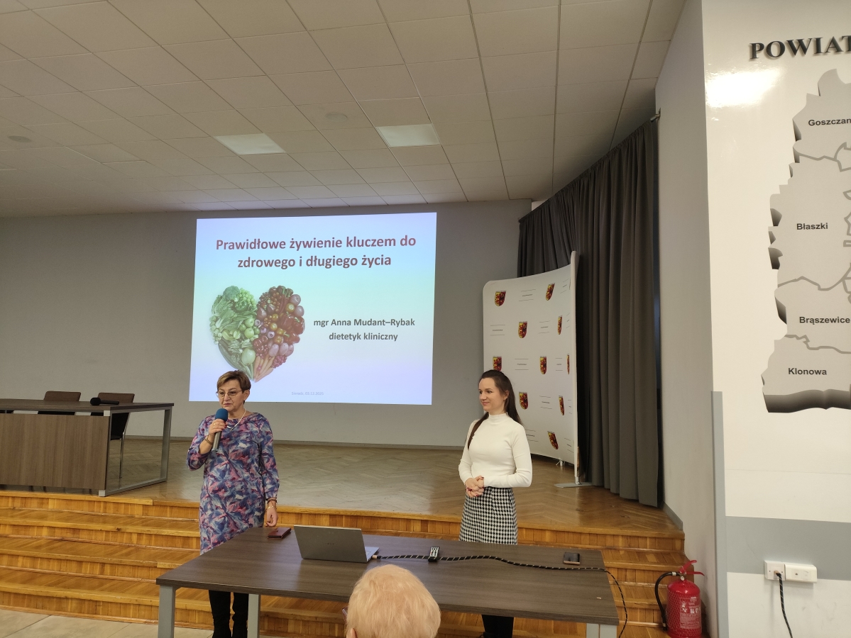 W dniu 3 grudnia 2025 roku Powiatowe Centrum Pomocy Rodzinie w Sieradzu zorganizowało „Warsztaty żywieniowo-kulinarne z dietetykiem. W szkoleniu wzięło udział 70 przedstawicieli organizacji skupiających w swoich strukturach seniorów z terenu Powiatu Sieradzkiego.